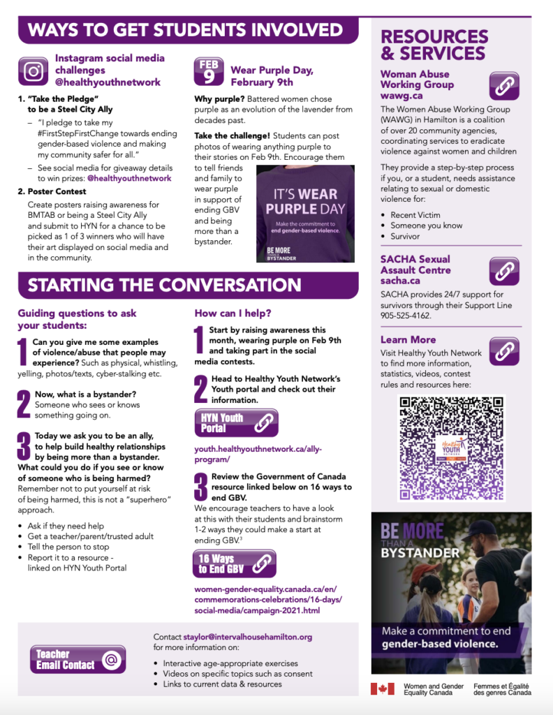 The Sexual Assault Centre of Hamilton and Area hosts many public education programs and events, including:
